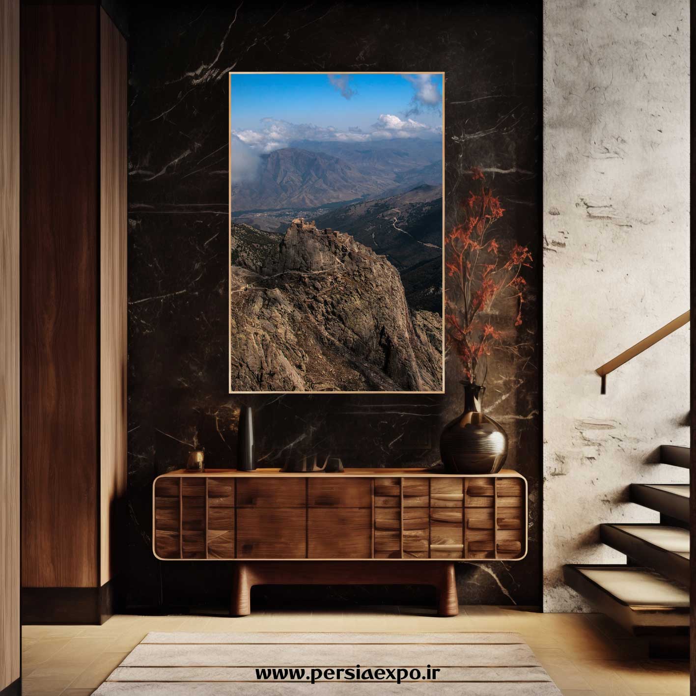 برای تکمیل جلوه مستحکم قلعه بابک، انتخاب قاب مناسب ضروری است. پیشنهاد ما قابهای چوبی ضخیم و تیره است تا حس تاریخی و سنگینی قلعه را تقویت کند.